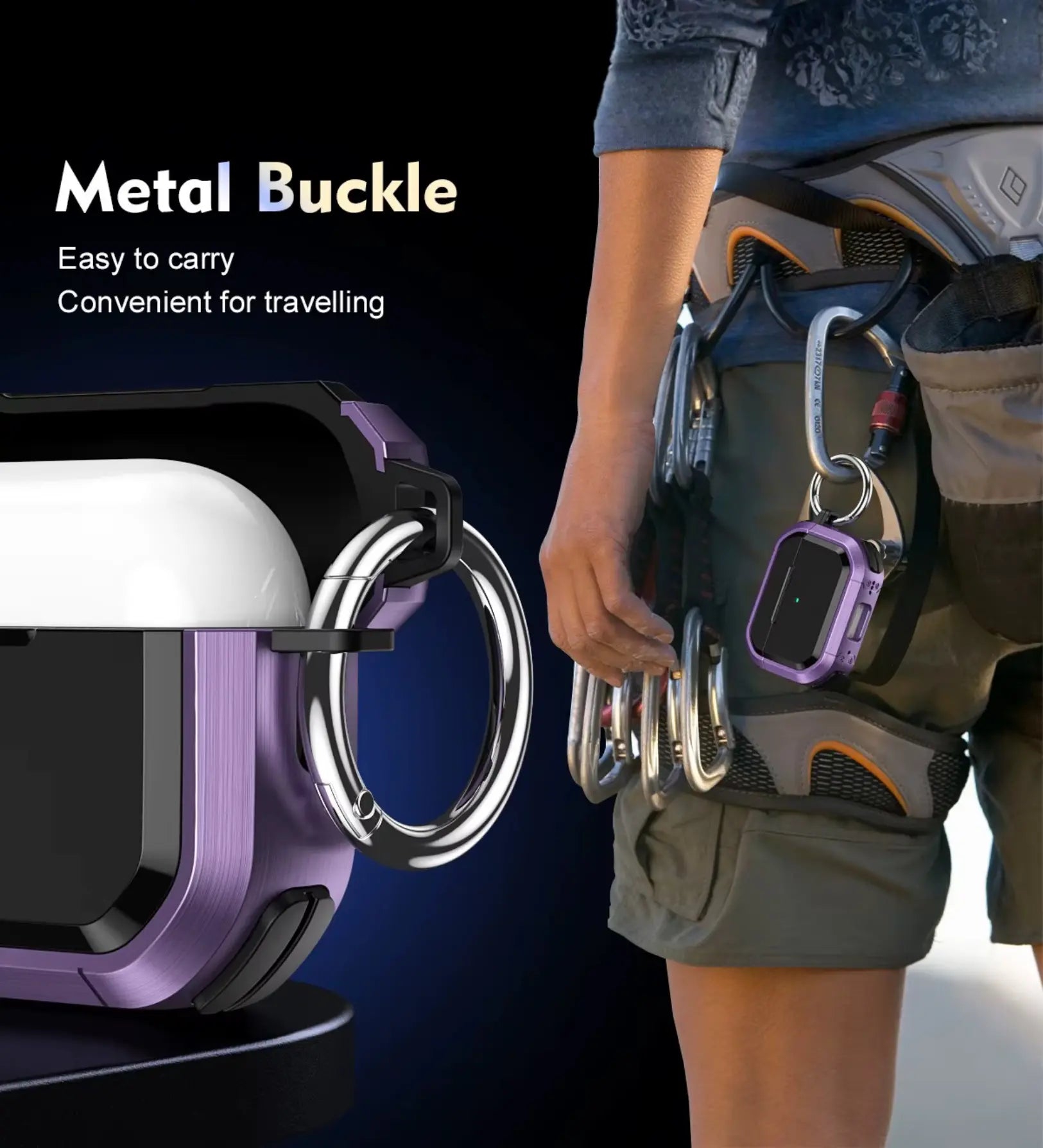 Box Includes: 1 × Rugged Case, 1 × Metal Carabiner (AirPods not included)