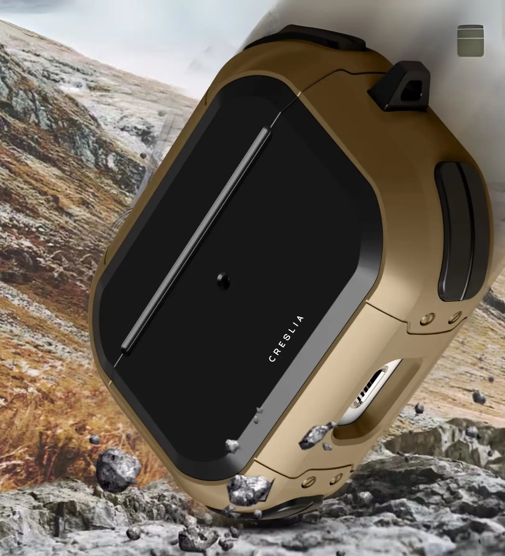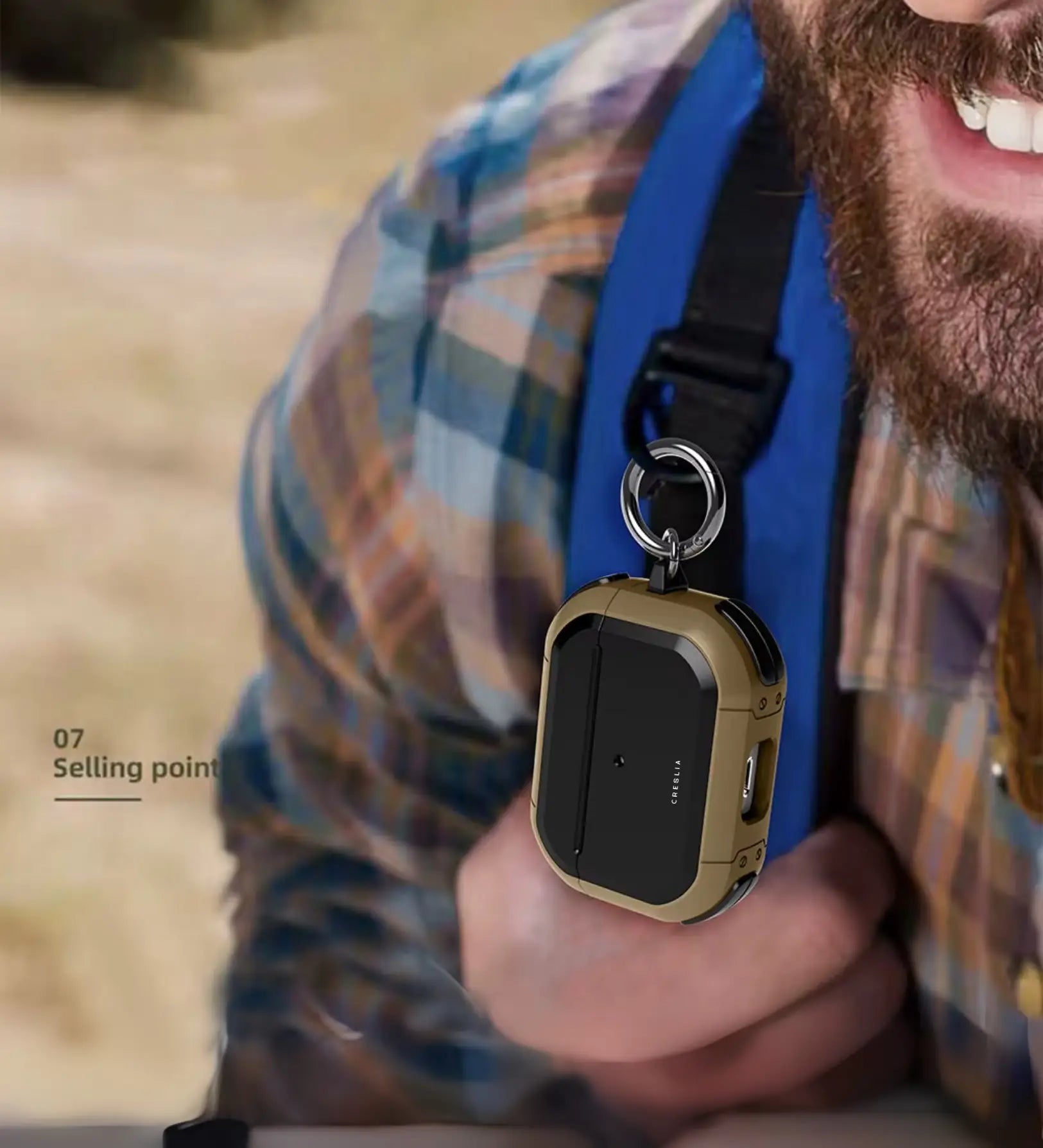 Each package includes 1 x Rugged Armor Case + 1 x Metal Carabiner (AirPods not included).