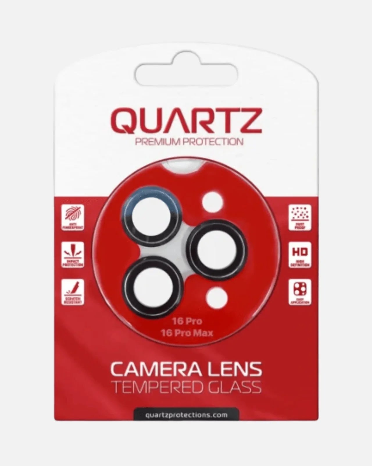 Keep your iPhone’s camera safe and crystal clear with the QUARTZ Premium Camera Lens Protector. Designed for iPhone 16 Pro and iPhone 16 Pro Max, this lens guard combines 9H hardness tempered glass with a strong metal ring frame for unbeatable durability. It shields your lenses from scratches, dust, and accidental drops without affecting image quality.