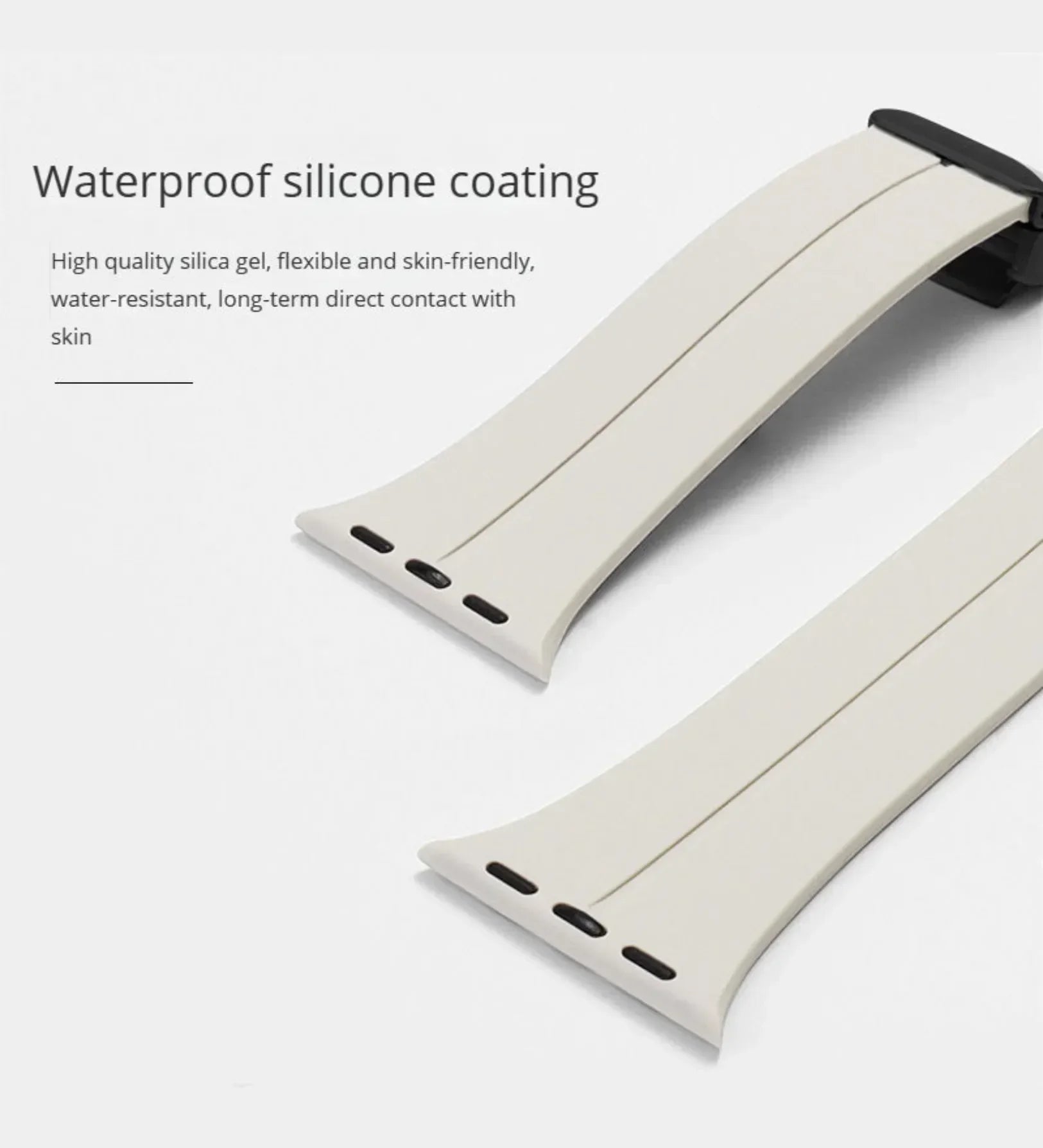 Meet the fuss-free Apple Watch upgrade that looks clean and feels weightless. Our liquid-silicone magnetic band pairs a soft, skin-friendly strap with a low-profile magnetic buckle for one-handed on/off and secure all-day wear. The smooth silicone drapes comfortably, resists sweat and water, and wipes clean in seconds, Perfect for workouts, workdays, and weekends.